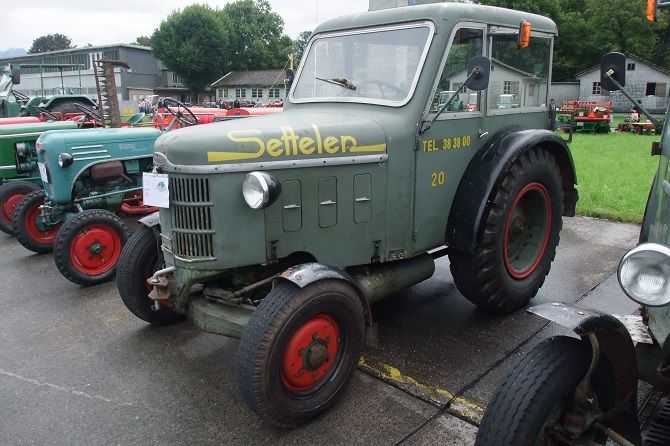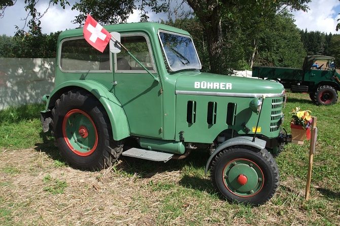 Der Traktor wurde vor Auslieferung an den Kunden auf dem Stand von GRAU-Bremsen, Genfer Salon ausgestellt.
