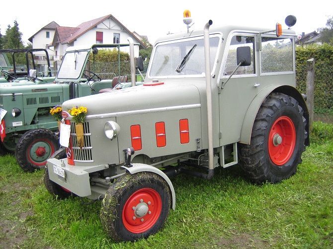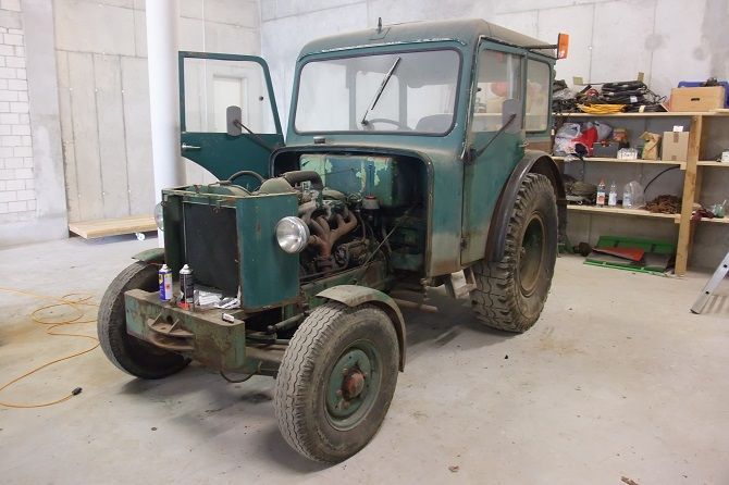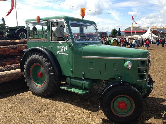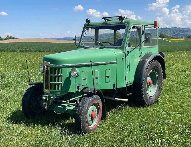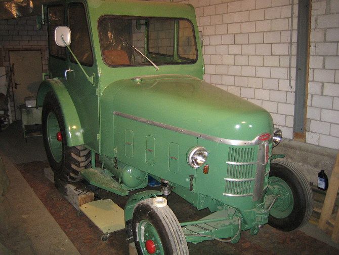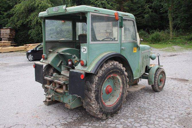 Der Traktor wurde vom Werk aus als Chassis, ungespritzt, nur mit Kühler, Kühlerhaube, Brennstofftank und Armaturenbrett m. Instrumenten an César Rigert geliefert. Diese Werkstätte fertigte und montierte den Sonderaufbau. Besonderheit: Zusatzgetriebe mit Revisiereinrichtung, Holzkran auf dem Dach, gleichzeitig tragende Funktion, Stahlfelgen hinten.